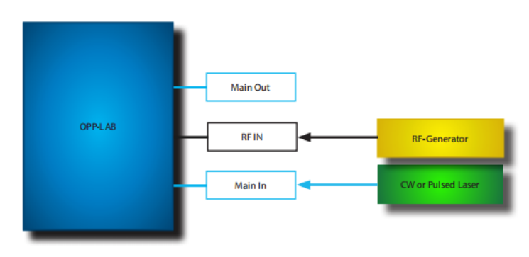 OPP-LAB連接到外部激光源(yuán)(激光器)和外部電信號發生器。