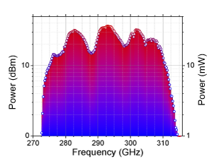 TeraSense®探測器器在很寬的頻率範圍內敏感。但是,它們的頻率響應不(bú)是連續的,而是由多個頻帶(峰結構(gòu))組成。響應曲線(xiàn)上的峰值位置可以在製造階段進行調整,以適應特定客戶的要求。