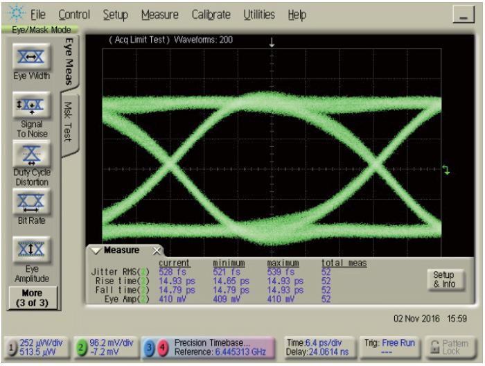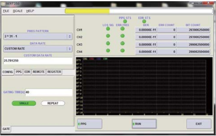 PPG-250C-x-4CH內(nèi)置超穩(wěn)定、低抖動時鍾,EDR-250C-4CH帶有正恢複時鍾 (CDR) 使其非常適合光纖鏈路(lù)測試。這些單元可通(tōng)過USB,GPIB端口程控,可(kě)以實現自動測試。