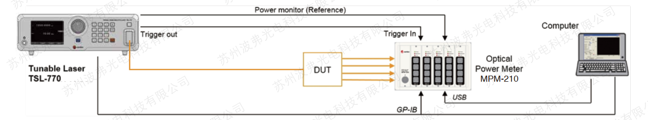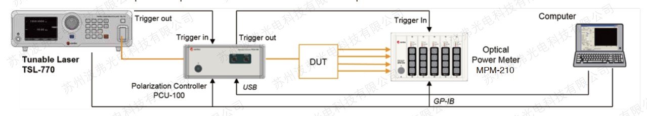 該激光器與Santec的功率計MPM-210和偏振控製器(qì)單元PCU-100集成,以創建交鑰匙WDL或PDL測量解決(jué)方案。Santec提供用於控製係統的軟件以及動態鏈接庫(DLL),以支持使用(yòng)各種編(biān)程語言進行係統集成(chéng)和控製。