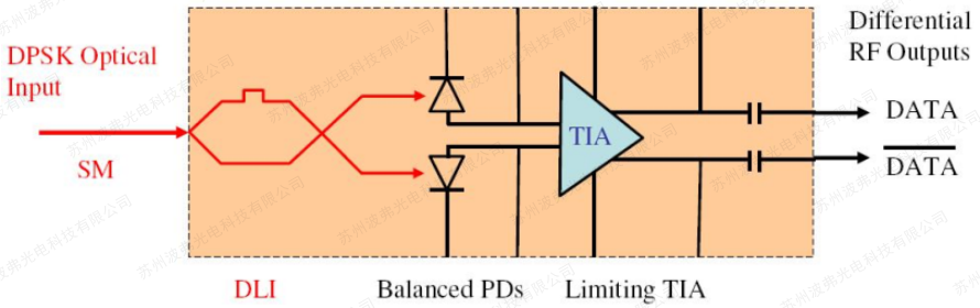 集成(chéng)的DPSK接收(shōu)器將延遲線幹涉儀(DLI)與平衡(héng)接收器(qì)相(xiàng)結合,以在蝶形封裝中實現緊湊的尺寸。與分立元件相比(bǐ),集成接收(shōu)器將來自(zì)DLI的光輸出直接耦合到平衡光電探測器,除了消除光纖路由和(hé)匹配之外,還可以減少插入損耗和低通道偏移。