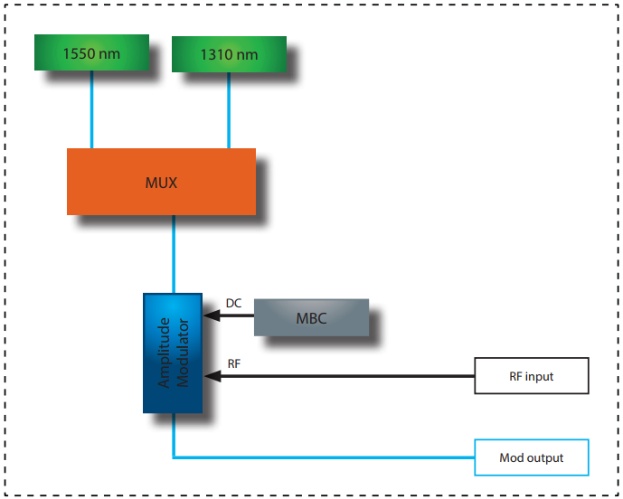 ModBox-VNA- 1310nm- 1550nm包含(hán)一個1310nm和1550nm低噪聲激(jī)光源和一個基於帶自動偏置控製(zhì)電(diàn)路的大帶寬LiNbO3模擬調製器。