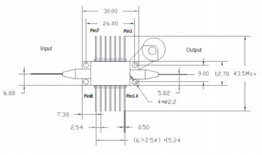 1550nm波段-20dBm飽和輸出功率-30dB增益-蝶形封(fēng)裝-保偏(piān)光纖-FC/APC接頭 |